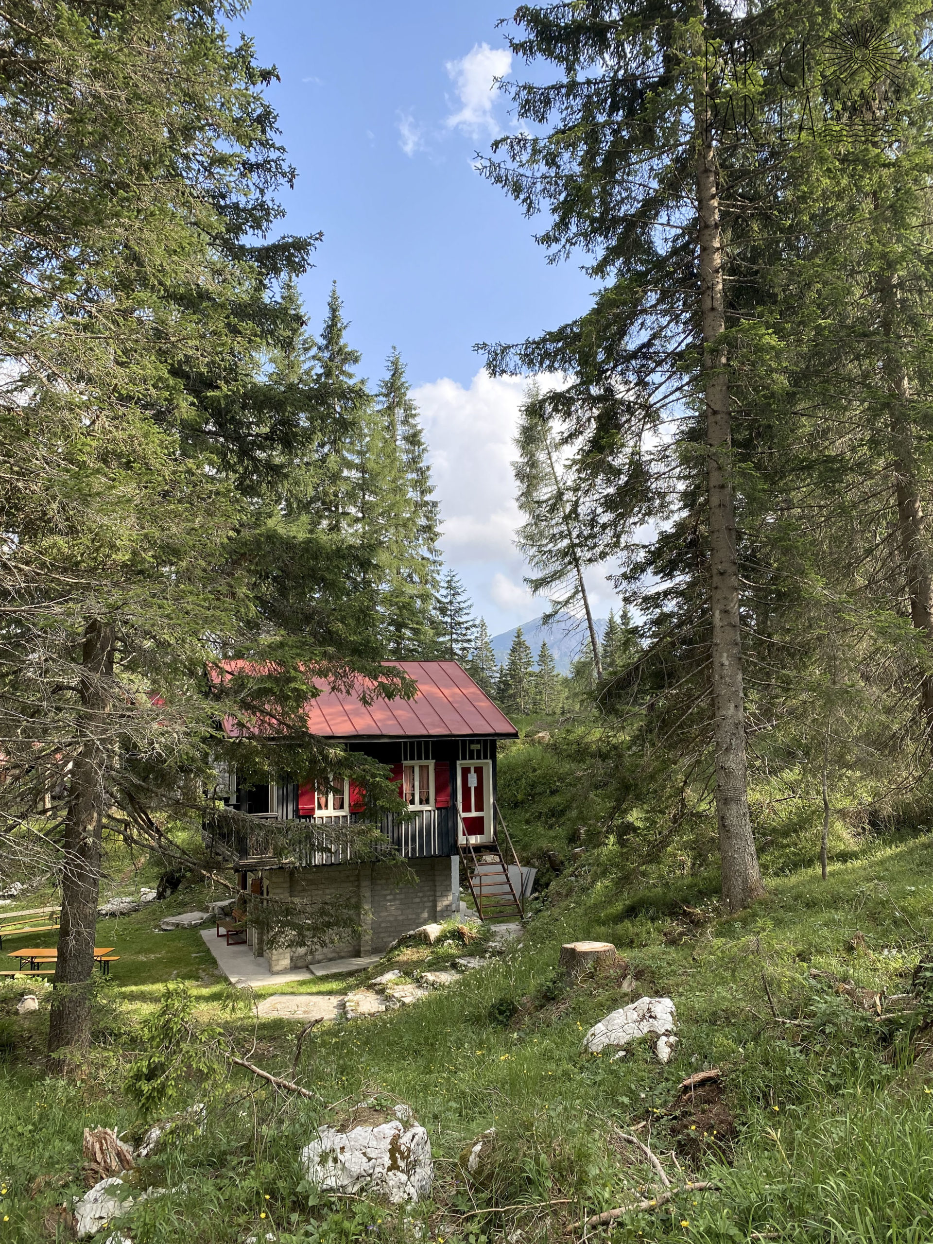 Notre boucle de randonnée touche bientôt à sa fin. Passée la descente, nous retrouvons la verdure et atteignons le rifugio Su’n Paradis pour déjeuner.