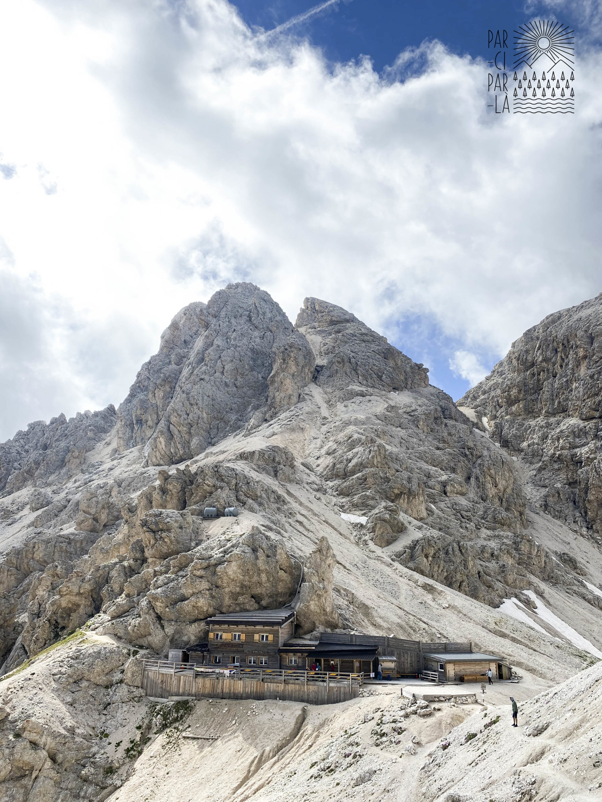 Ce refuge est niché dans la roche et est aussi le point de départ de la via ferrata du Catinaccio à Antermoia. Quelques dizaines de minutes après être arrivés, nous apercevons nos premiers bouquetins en fin de journée.