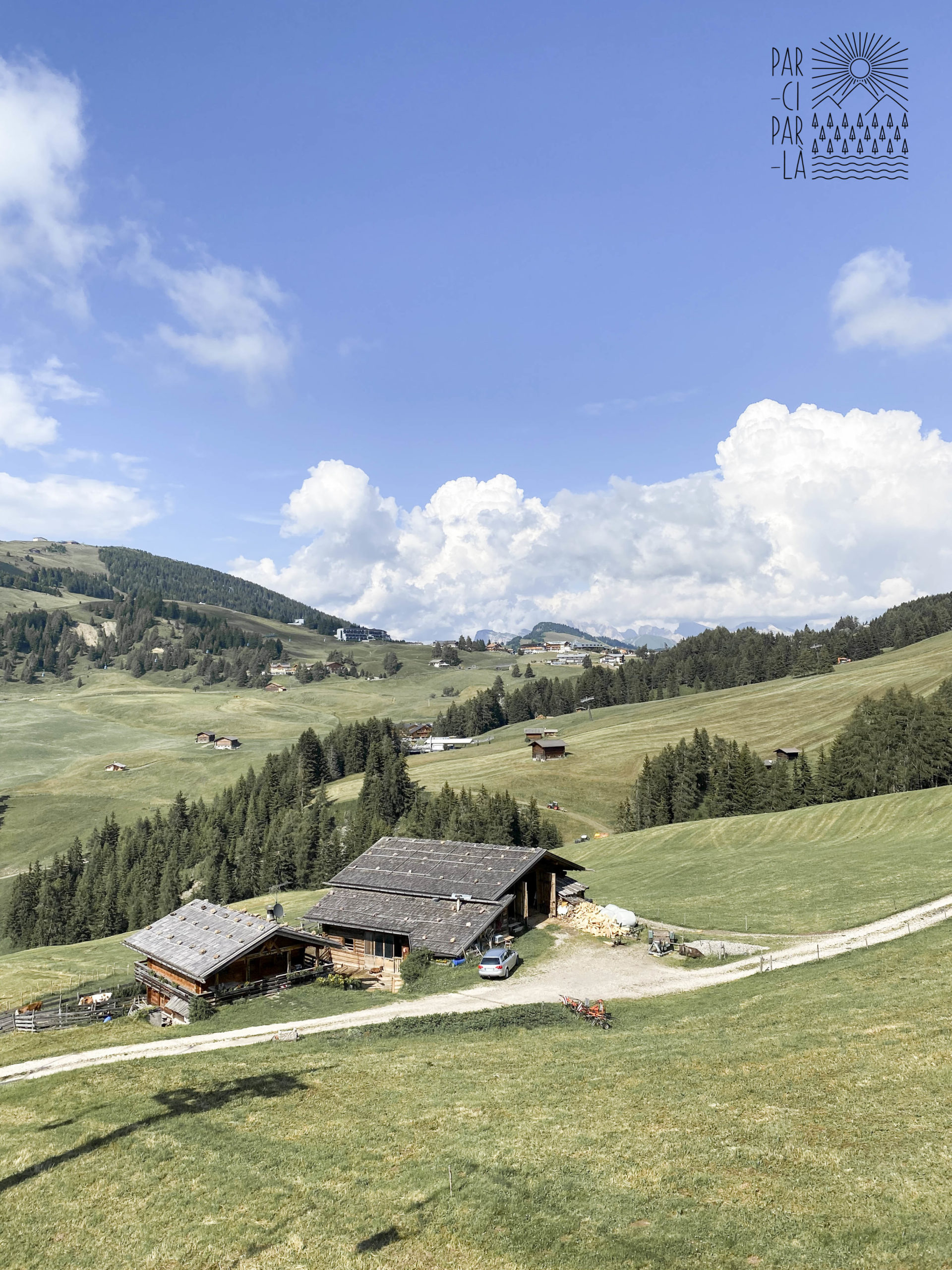 A Alpe di Siusi nous ne prenons pas les cabines qui mènent au Compatsch (le plus vaste plateau montagnard d’Europe) mais nous garons la voiture près de l’auberge Frommer pour prendre le télésiège Spietzbuhl qui nous mène au refuge du même nom. C’est d’ici que nous entamons, sous un grand soleil, une randonnée en boucle de 3 jours autour du parc naturel Sciliar-Catinaccio.