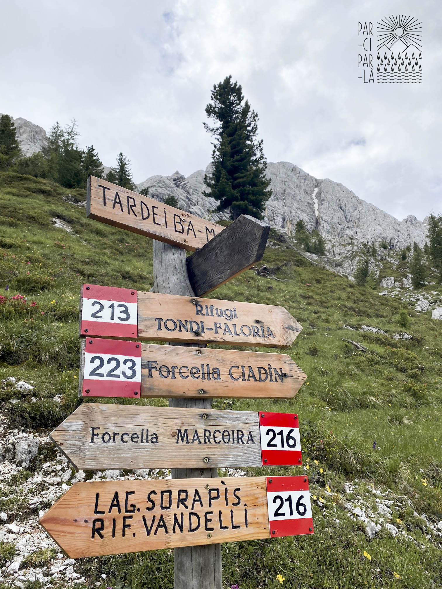 Certainement une de nos plus belles randonnées de la semaine ! Que vous fassiez le chemin “touristique” ou la boucle que nous vous proposons, garez vous au parking du Passo Tre Croci. Si vous suivez notre itinéraire prenez le chemin 213, le plus à droite (sinon descendez 50 mètres plus bas pour prendre le 215).
