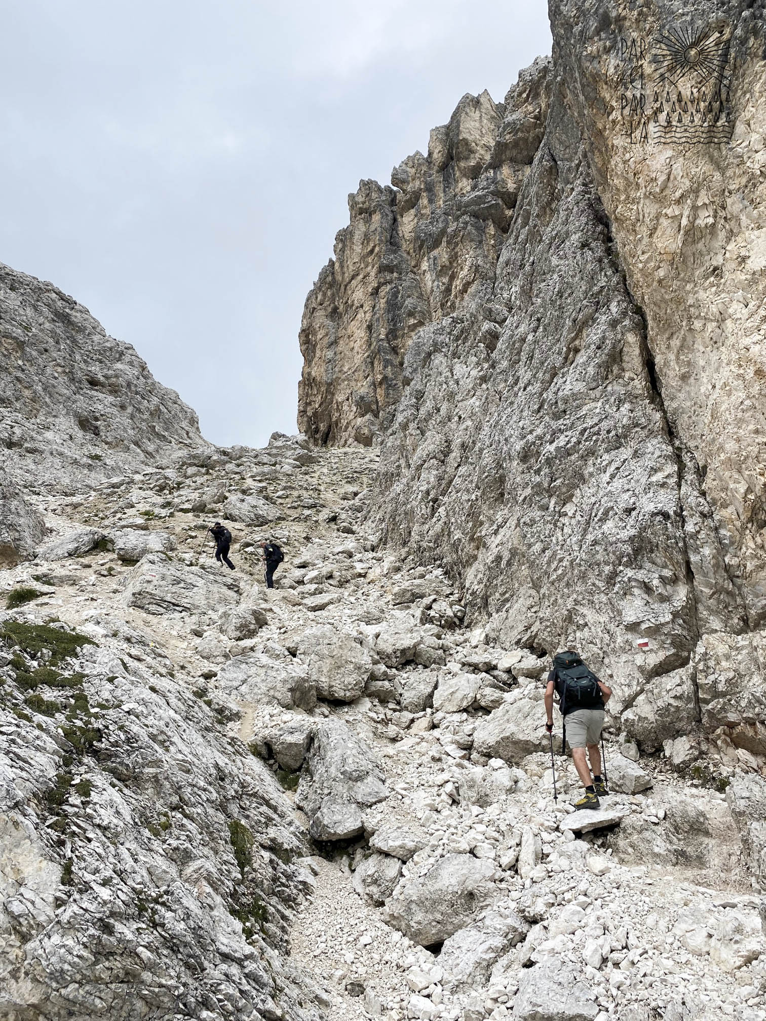 Nous avons hésité à enchaîner la randonnée à pied vers le Gruppo Sella en passant par le Sasso Piatto et Sassolungo. Nous ne l’avons finalement pas fait pour des raisons logistiques (rajout de 2 jours et nous avions déjà fait Sasso Piatto et Sassolungo il y a deux ans).