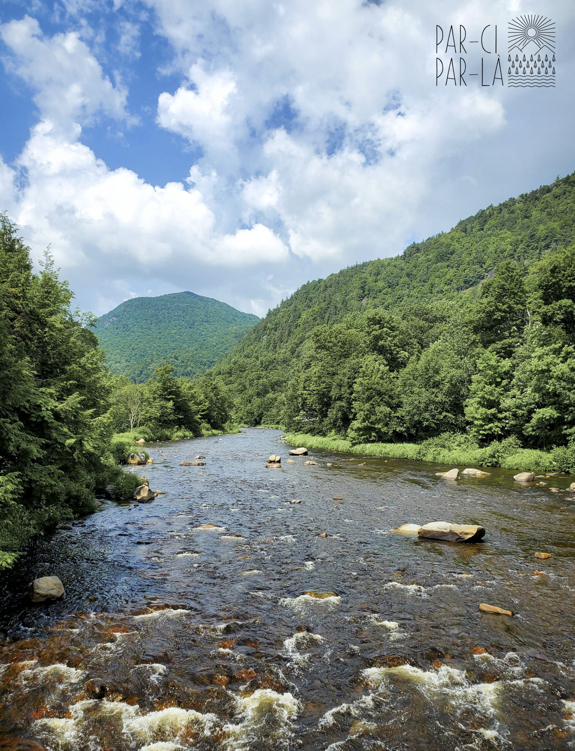 Le soleil brille et le parcours à travers les forêts et le long de la rivière Ausable est splendide.