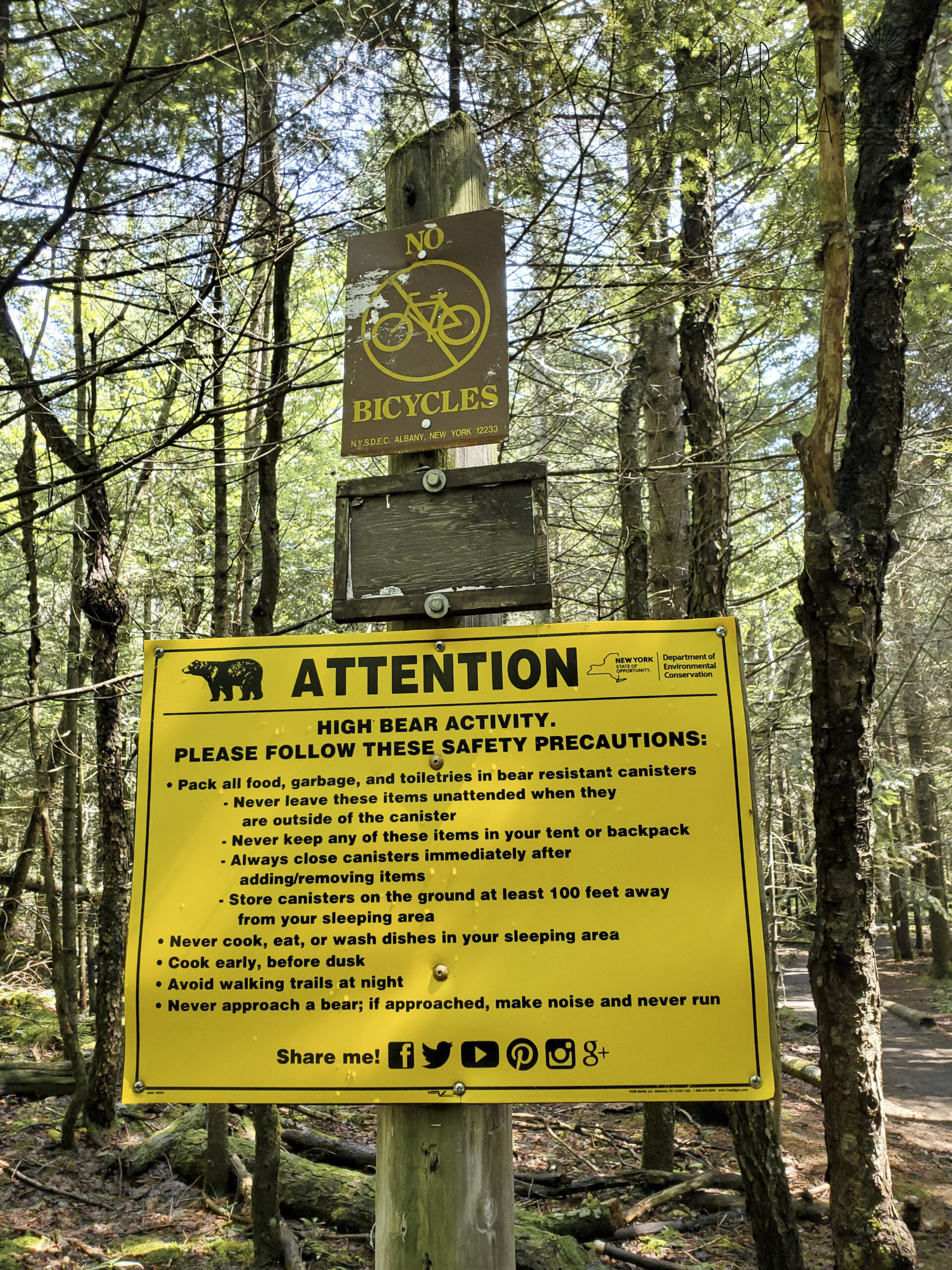 Au départ du Adirondack Lodj, déjà lui même perdu au bout d’une longue route, il vous sera nécessaire de prendre un bear canister (8$) si vous prévoyez de bivouaquer. Attention car les rangers veillent et vous pourriez écoper d’une amende. En effet, les ours noirs sont nombreux ici et les panneaux nous le rappellent bien.